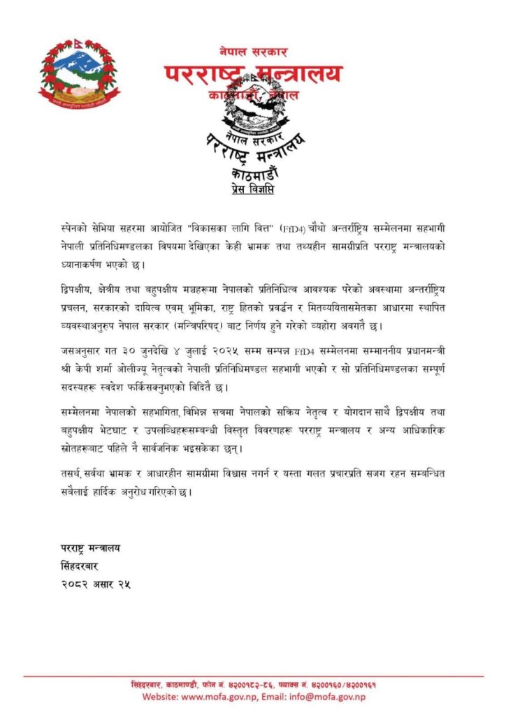 प्रधानमन्त्री ओलीकाे स्पेन भ्रमणमा मान्छे लुकेकाेबारे परराष्ट्र मन्त्रालयले दियाे स्पष्टीकरण
