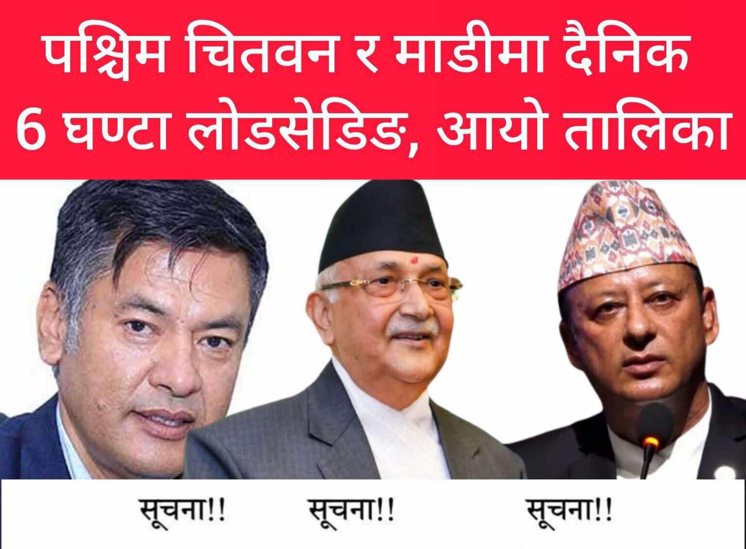 उज्यालो नेपाल भएको भनेर खुसि भएका चितवनवासी जनताहरू दैनिक ६ घण्टा लाेडसेडिङकाे तालिका सार्वजनिक भएपछि अचम्मित भएका छन् ।