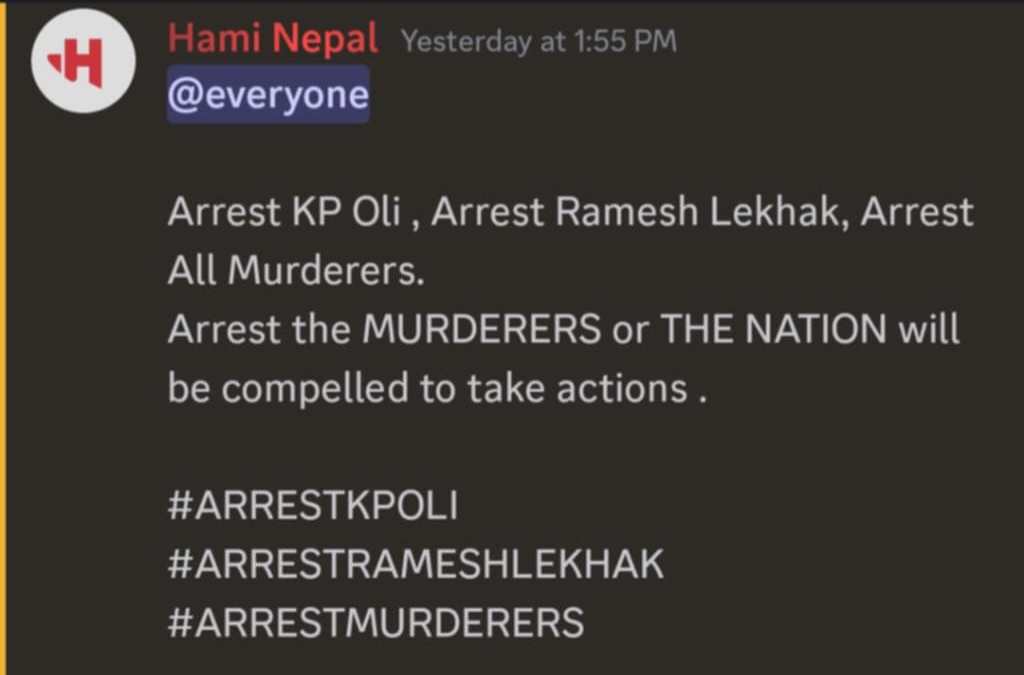 गत सेप्टेम्बर ८ अर्थात २३ भदौको भ्रष्टाचारविरोधी आन्दोलनमा दमन गर्न आदेह दिएकाे भन्दै तत्कालीन प्रधानमन्त्री केपी शर्मा ओली र गृहमन्त्री रमेश लेखकलाई पक्राउ गर्न जेन–जी अगुवाहरूले सामाजिक सञ्जालमार्फत दबाब अभियान सुरु गरेका छन्। ‘द काउन्सिल अफ जेन–जी’ नामबाट #arrestkpoli र #arrestrameshlekhak ह्यासट्यागसहित अभियान चलाइएको हो।