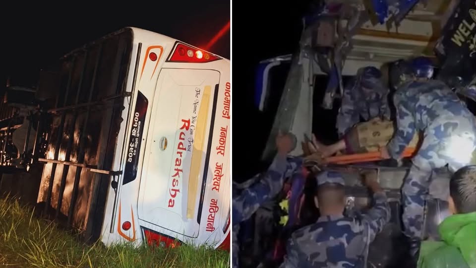 टिकौली जङ्गलमा बिहान बस दुर्घटना हुँदा ३३ जना घाइते