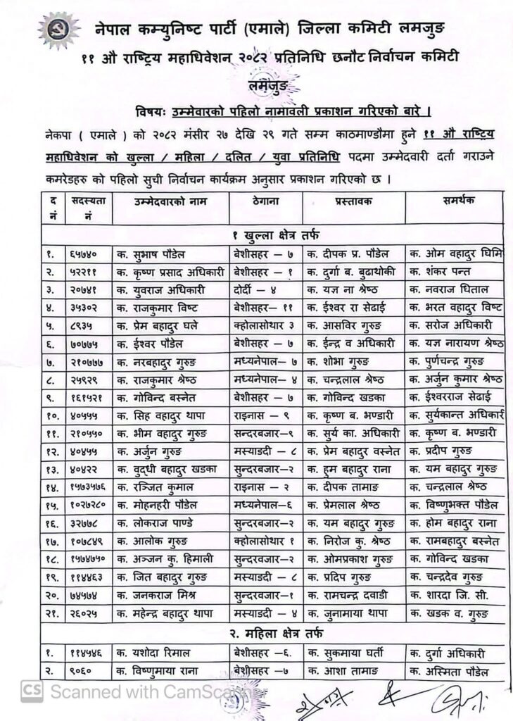 एमाले महाधिवेशन प्रतिनिधिमा आकांक्षी धेरै, लमजुङको ९ सिटमा ४० काे मनाेनयन