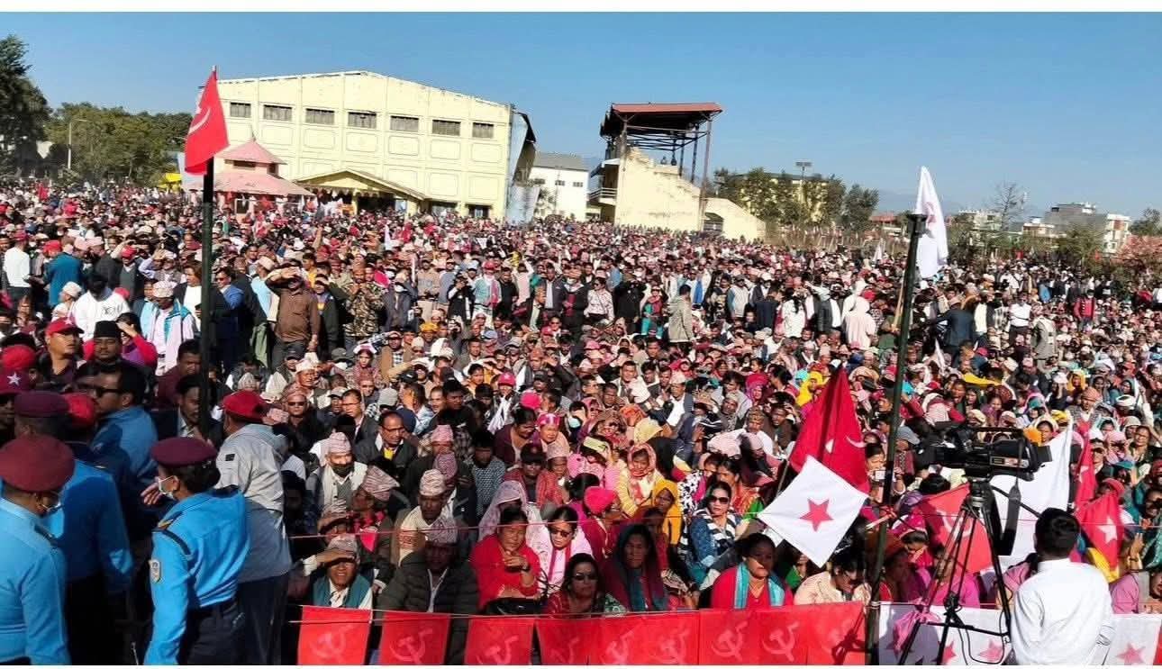 धनगढीमा नेकपाकाे एकता सभामा उर्लियाे जनसागर, प्रचण्डले भने-वाम देशभक्त एकता अपरिहार्य