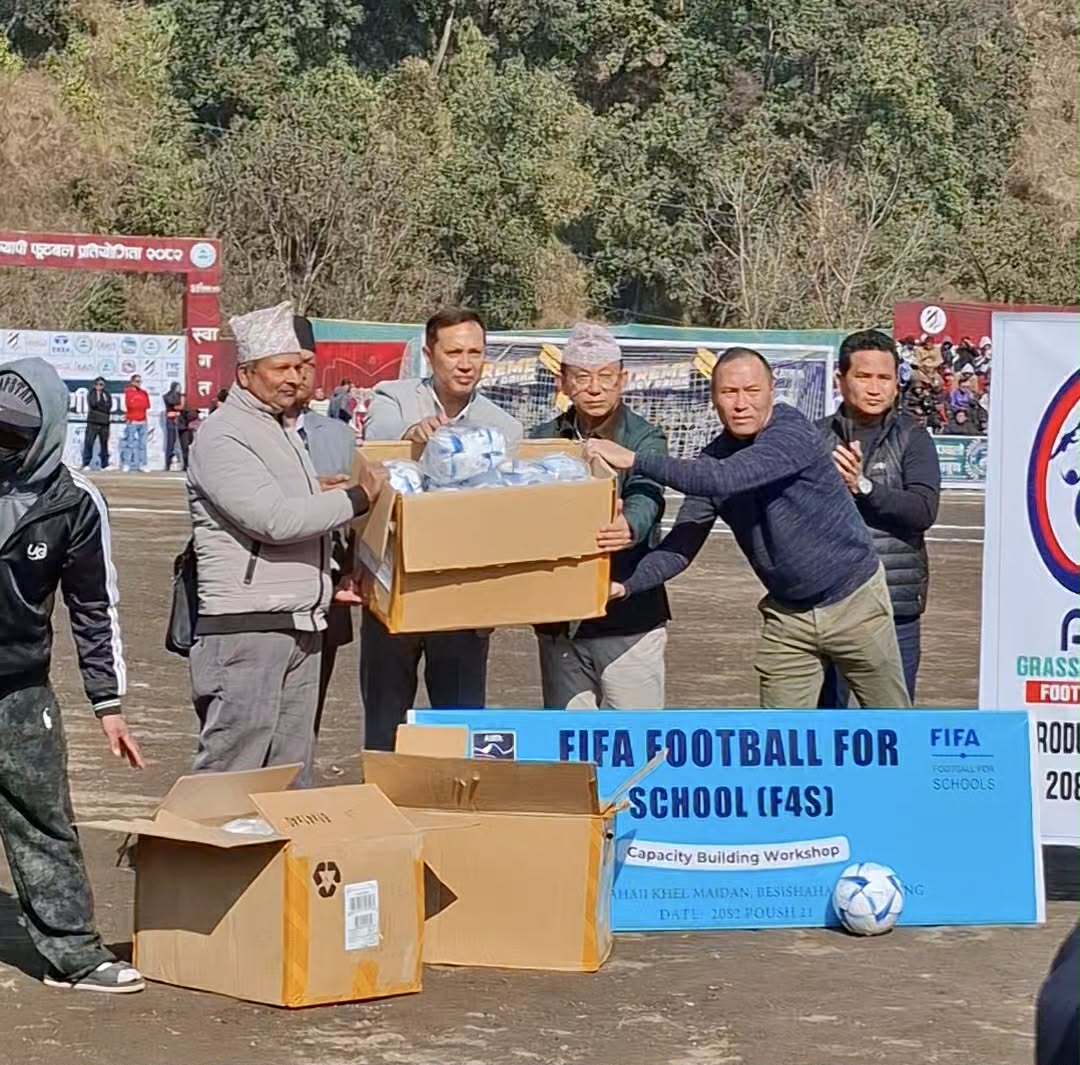 लमजुङमा जारी ३३ औँ त्रिवेणी कपको फाइनल खेलको दिन एन्फाको संयोजकत्वमा फिफा फुटबल फर स्कुल कार्यक्रम राखी लमजुङको १६ बिद्यालयलाई २०,२० थान फुटबल बितरण गरेको छ ।