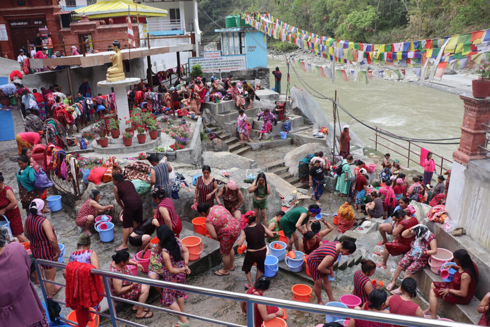 ताताेपानी कुण्डमा नुहाउँदै गरेका मनिसहरू
