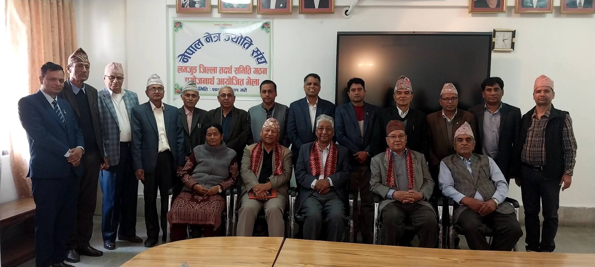 नेपाल नेत्रज्योति संघ लमजुङको काठमाडौंमा बुधबार सम्पन्न परामर्श भेलाबाट वरिष्ठ नेत्र राेग विशेषज्ञ डा. दिपबहादुर कार्कीको संयाेजकत्वमा जिल्ला तदर्थ समिति गठन भएको छ । समितिकाे सचिवमा उत्तरकुमार श्रेष्ठ र काेषाध्यक्षमा सिर्जना बराल अधिकारी चयन हुाुभएकाे छ भने कार्यसमिति सदस्यहरूमा जनक मिश्र, भिम बहादुर कार्की, रामप्रसाद पाैडेल, गाेमा थापा, मधुविलास पाैडेल, वसन्त थापालगायत रहनुभएकाे छ ।