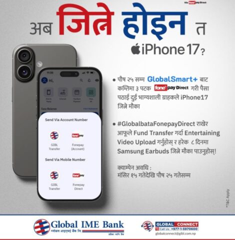 ग्लोबल आइएमईको मोबाईल बैंकिङ्ग गर्दा आइफोन १७ जित्ने मौका