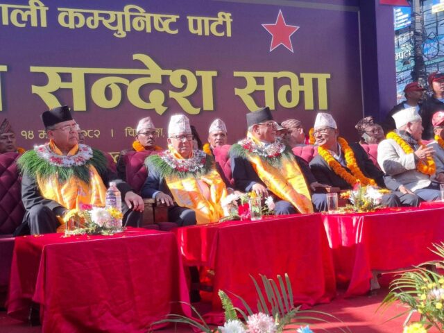 नेपाली कम्युनिस्ट पार्टीले आज पाेखरामा एकता सन्देश सभा गर्दै