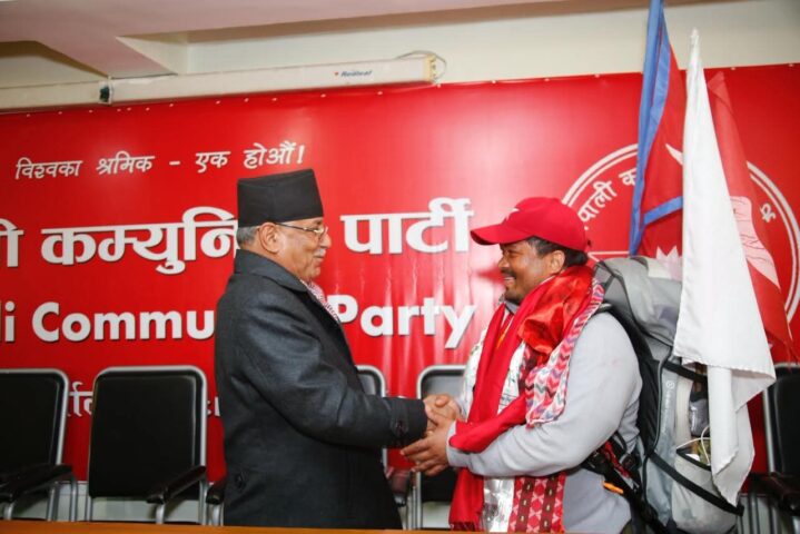 रूकुमदेखी पैदल यात्रा गरेर काठमाडौं आइपुगेका केशव रावललाई प्रचण्डले गरे स्वागत